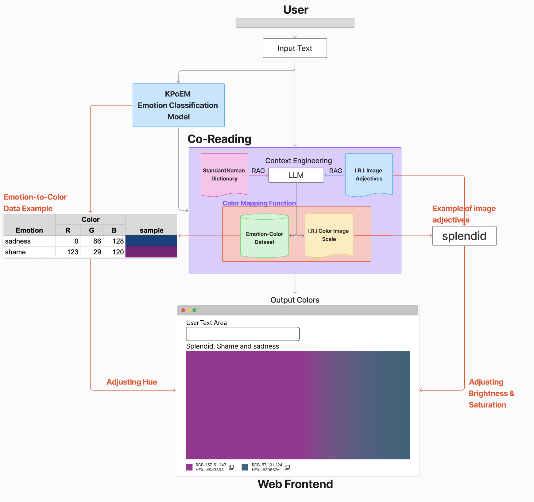 Figure 1. Overall architecture of the Co-Reading system for Emotion-to-Color mapping